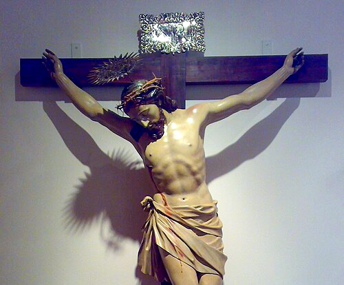 El que se conserva en el Museo Diocesano es un ejemplo. Es una talla de madera policromada que muestra a Jesús Crucificado en el Calvario, coronado con las espinas. Su Composición es casi una réplica de los crucificados de tamaño natural. En este caso, Luján aún no se había desprendido de los preceptos barrocos que imprimen realismo y naturalidad a las obras, como el desvanecimiento del cuerpo muerto, la caída brusca de la cabeza sobre el lado derecho, o las carnaciones mórbidas. Sin embargo, al tratarse de un Cristo muerto, el mensaje religioso que transmite a los fieles devotos es el del amor y la entrega por los demás.